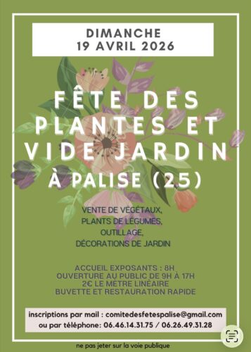 1 rue de l’église, 21310 Bézouotte, parking gratuit, restauration sur place, service brouettes, animation enfants,tarif: 5€ gratuit -18ans,horaires samedi 9 mai 10h-19h dimanche 10 mai 9h-18h https://www.jardinez.com/agenda-Foire-aux-plantes_Bezouotte_70769_fr
