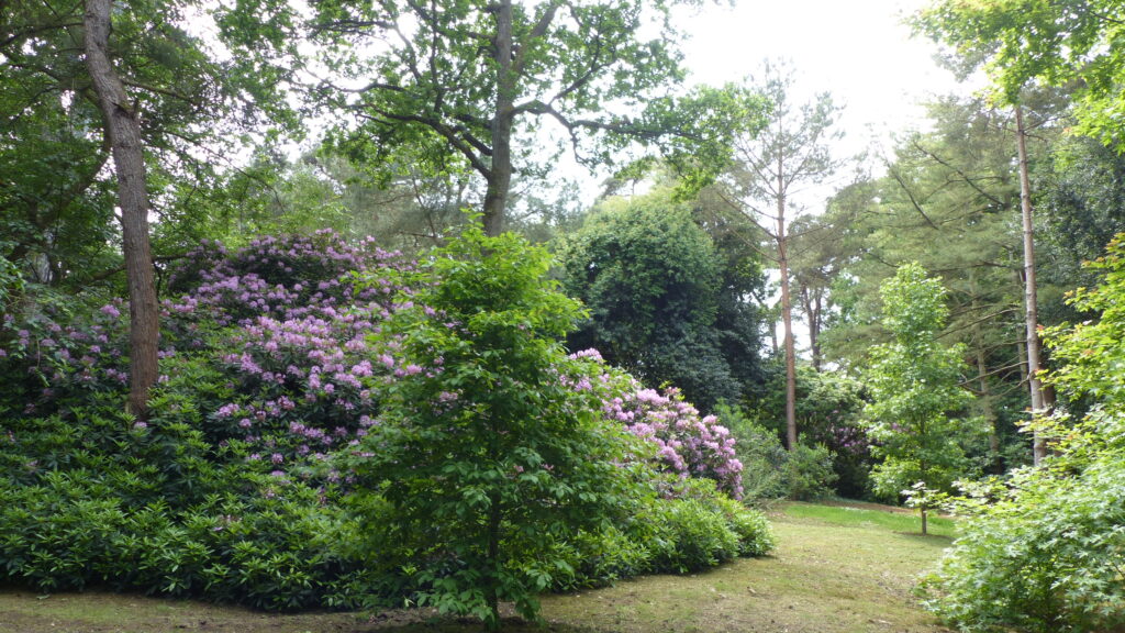 La Princesse n’est cependant pas une collectionneuse, même si les genres Rhododendron, Betula, Viburnum, Pieris, Skimmia, Cornus, Acer, Deutzia, Hydrangea, Magnoliasont particulièrement bien représentés dans ce sol acide, et que bon nombre de conifères botaniques et des raretés soient présents. Rien d’exhaustif ici. Seule l’harmonie compte. Elle veut pouvoir aller n’importe où, à n’importe quel moment et pouvoir se tourner dans toutes les directions pour admirer des scènes, des perspectives, des ensembles, et ce à toutes les saisons.