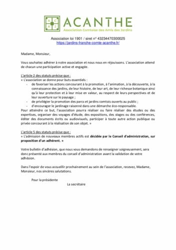 information aux nouveaux adhérents