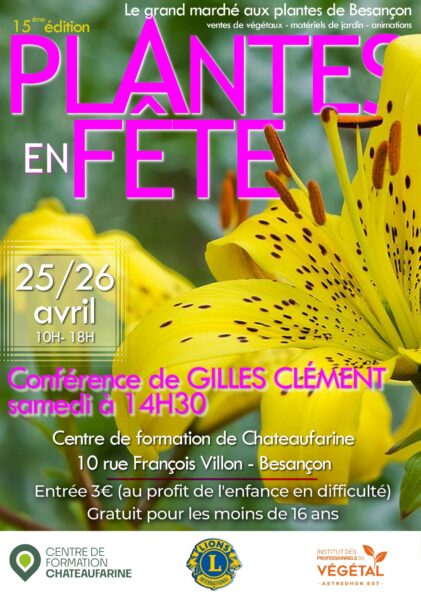 actualité du 25 > au 26 avril 2026 Plantes en fête à Chateaufarine Conférence de Gilles Clément samedi à 14h30
